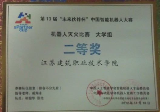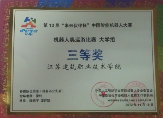 2012年12月第13届中国智能机器人大赛获一等奖