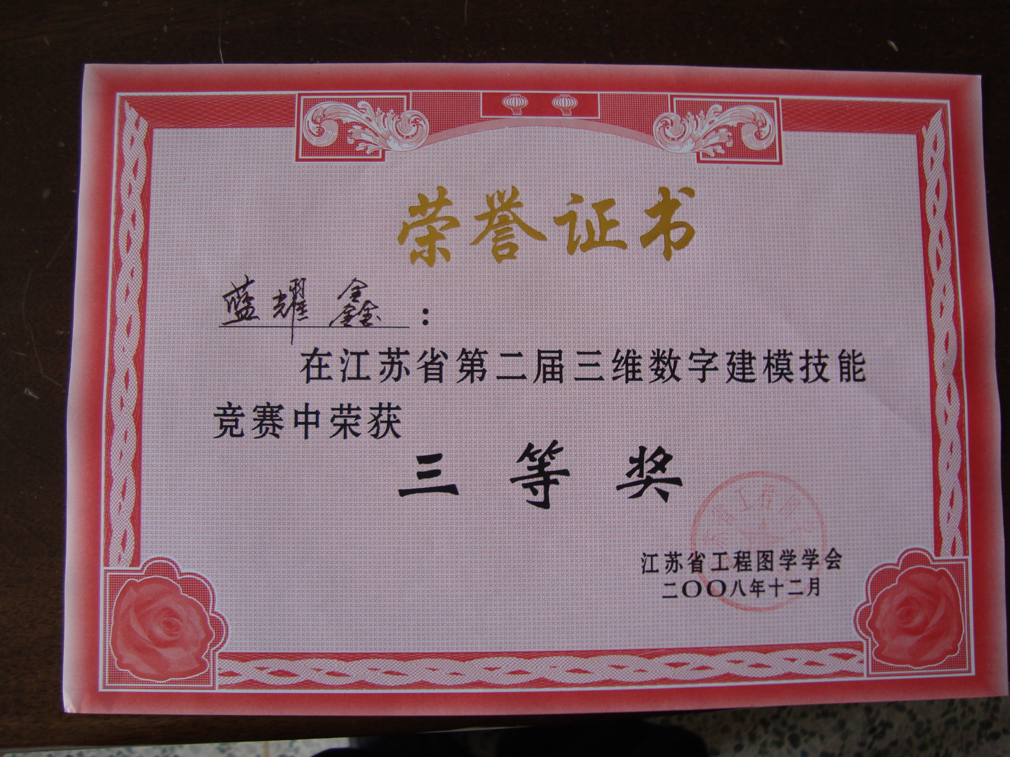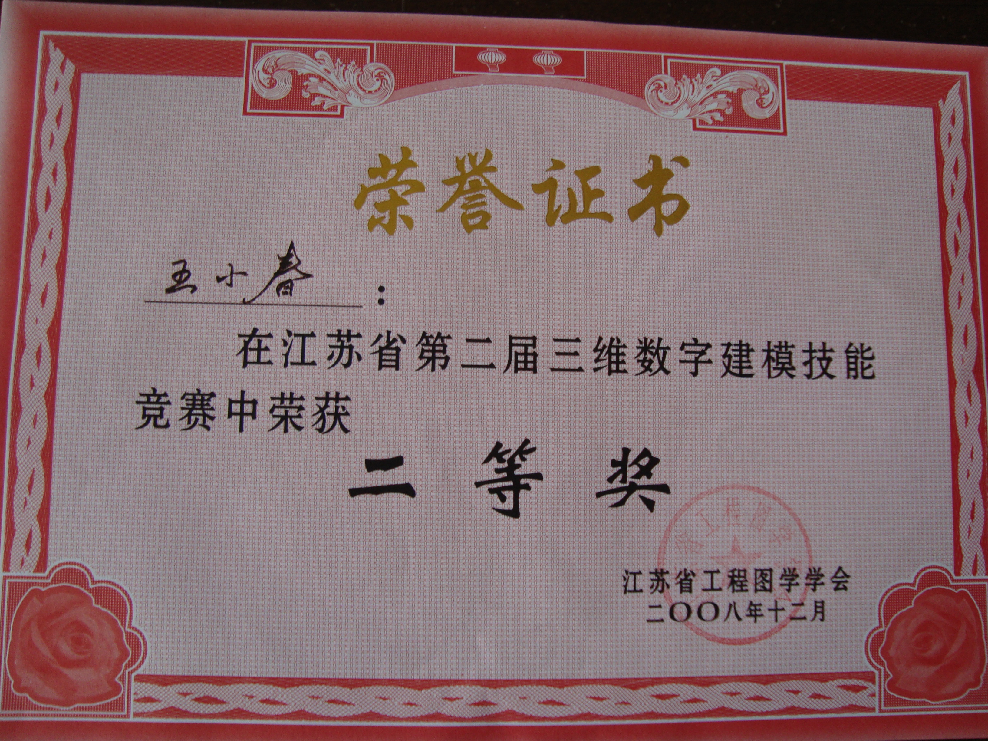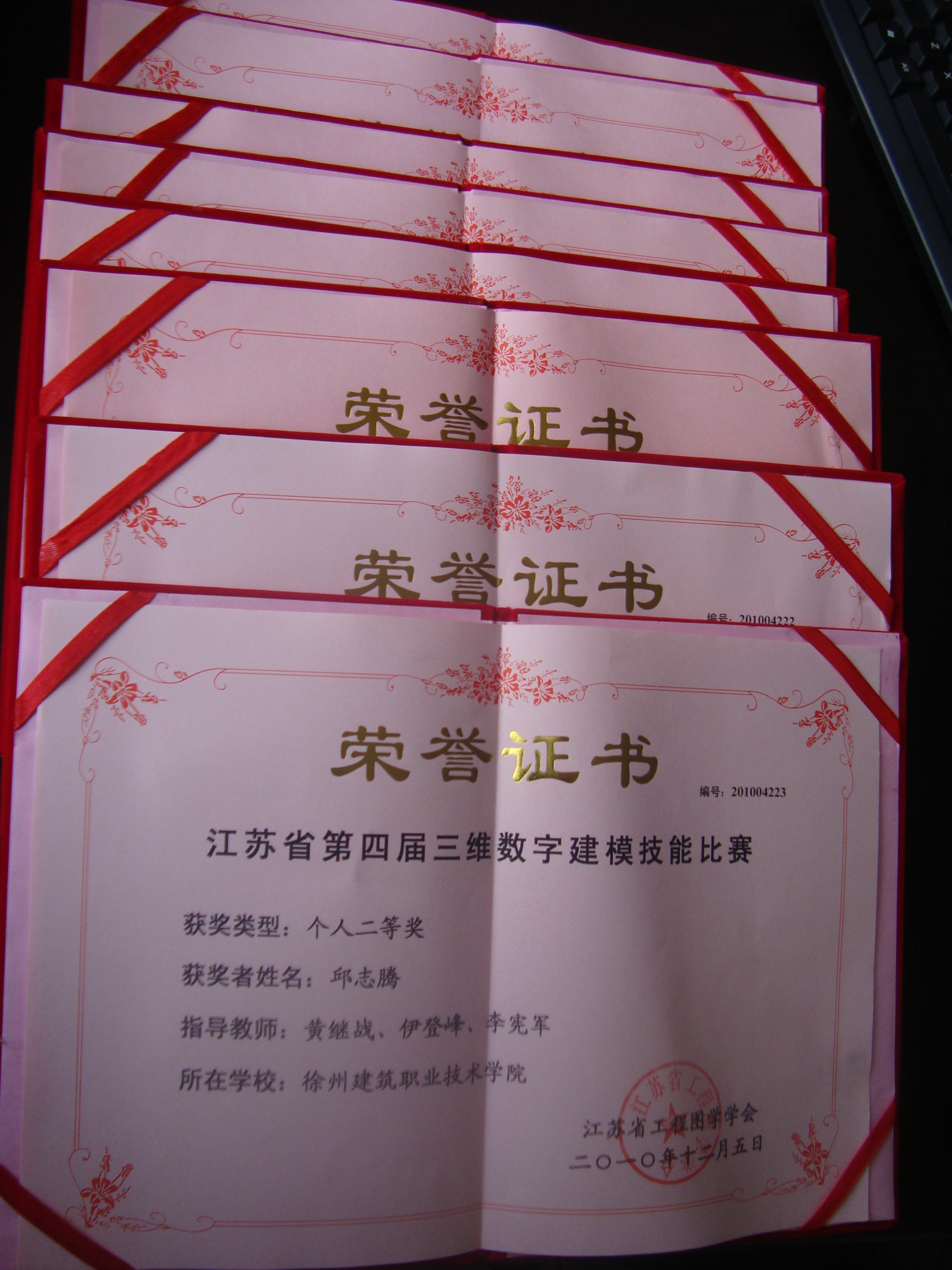 2008、2010年江苏省第二届、第四届三维数字建模比赛获一、二、三等奖