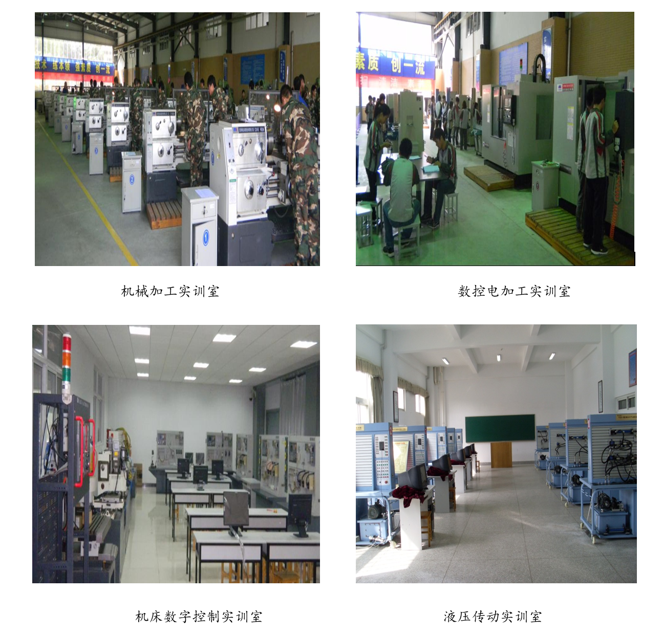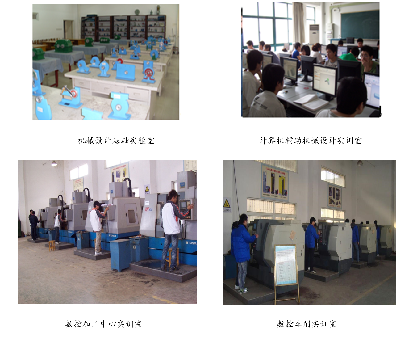 配备了机械设计基础实验室、计算机辅助机械设计实训室、数控加工中心实训室、数控车削实训室、机械加工实训室、数控电加工实训室、机床数字控制实训室、液压传动实训室、电工电子实训室、电气控制与PLC实训室等校内实训基地和国内外高端的UG、Pro/E等软件。