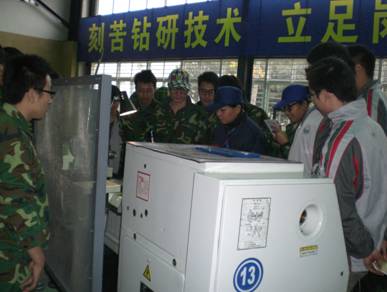 车工训练团队很强大。训练项目选择了平面、外圆、阶台、圆弧面、切槽、滚花、中心孔等,采用了一夹一顶的安装加工。已经完成了三轮训练,师生信心十足,准备迎赛。