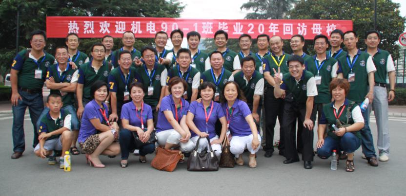 2012年8月17日,机电90-1班35名校友毕业20年回访母校,在建筑技术馆会议室里,与老教师们欢聚一堂,共同纪念毕业20周年。校友们与机电学院领导及当年任课教师:田顺喜、郭宪宇、张天熙、许庆堂、温德、陆望高、张振广、樊奎英、康力、史俊青等热情座谈,合影留念,共同回忆20年前在母校学习、生活的点点滴滴。机电90-1班向机电学院赠送了纪念品。
