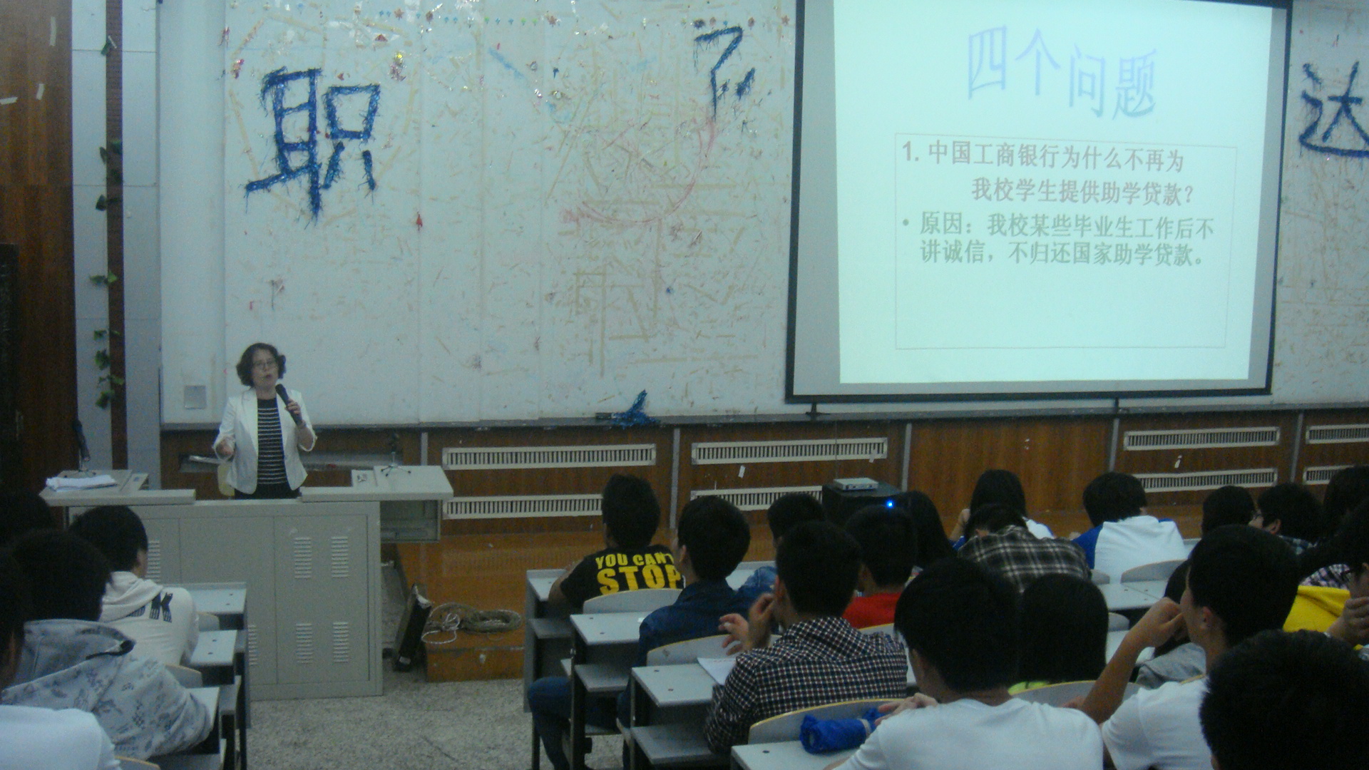 罗教授的讲座内容丰富,且逻辑性强,案例分析贴近学生生活,博得同学们的阵阵掌声。罗老师一开场以“四个问题”导入:中国工商银行为什么不愿意为我校学生提供助学贷款?你选择朋友的标准是什么?如果你是老板选择员工的标准是什么?一个人成功最重要元素是什么?接着,罗教授讲了三个方面的内容。第一,诚信做人,立身之本。从当前社会现象分析,人们认为诚信吃亏,比如三鹿奶粉、地沟油,提出做人要讲诚信,特别是考试、求职。第二,正确使用奖助学金。具体讲述了获得奖助学金的同学该如何消费,其他同学该如何正确对待他人获得的奖学金助学金。第三,要知恩、感恩、报恩。生活中,我们处处都受到“恩赐”:父母的养育之恩;师长的教诲之恩;朋友的帮助之恩;国家的资助之恩;社会安定与繁荣。此外还要懂得感恩:感恩是一种生活态度,感恩是一种美德,感恩更是一种义务!还要学会感恩:报答父母;报答朋友;感谢师长;感谢社会;对家庭、对父母、对社会尽自己应尽的一份责任。最后罗教授期望学子们毕业后不要损害自己的名誉,不要给学校形象抹黑,做一个诚实守信、知恩图报的好人!为学校增光添彩!