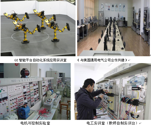 电气自动化技术专业校内实验实训装备精良,配备有电工电子实验实训室、高级维修电工室、电器拆装维修室、电机与拖动实验室、传感器应用实训室、可编程控制器实训室、单片机技术、机电一体化、自动线,并与美国通用公司建立GE智能平台自动化系统应用室,与西门子总部共建电气控制与PLC实训室等具有国内外高端的工程技术软件。