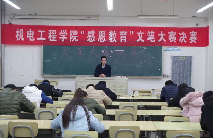 12月11日,由机电工程学院分团委主办的文笔大赛初赛正式开始,此次文采大赛目的是通过活动激发同学们的写作热情,提高工科专业学生文字书写、表达能力,为今后走向工作岗位打下坚实的基础。参加此次大赛的是机电学院16级新生。经过层层选拔机器人16-1宗圆、机控16-1张一帆、机电16-2孔浩宇、模具16-1孙萌、机控16-1王青青、机电16-3徐晶晶、机电16-2仇新宇、张绪、机设16-1黄昌乐、机制16-1林圣函、电气16-3孔壮、模具16-1闫士峰、模具16-1王严博13名同学进入决赛。