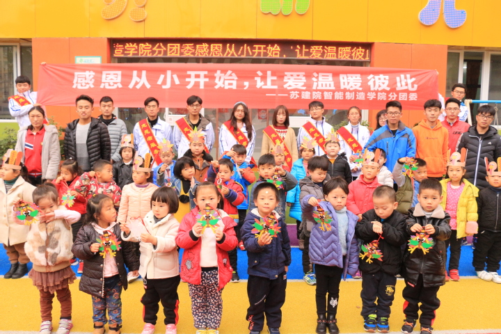 11月20日下午,新利18官方网站多少分团委走近金贝贝幼儿园,在老师和孩子的共同参与下,通过制作“感恩礼物”将自己的爱融汇到行动之中,送给父母。学习手语《感恩的心》表演给爸爸妈妈看,感谢父母、感谢老师。教会他们从小学会感恩,感恩从小事做起。节日所包含的意义慢慢融入幼儿的记忆中,孩子们脸上洋溢着灿烂的笑容。