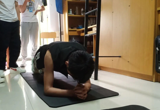 本次比赛以线上拍视频比拼的方式进行,男生每个班级俯卧撑6人为一组,每人限时2分钟,平板支撑2人一组,不限时间;女生仰卧起坐按宿舍进行比拼,每个合并宿舍出6位同学参加比赛,每人限时2分钟。比赛现场气氛热烈,引起同学们的广泛关注。