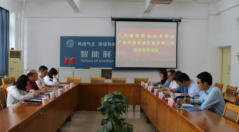 刘盛贤书记介绍了学校学院的历史沿革、发展现状以及近些年校企合作产教融合取得诸多成果。广东鸿图南通压铸有限公司行政总监王悦民介绍了公司的发展概况、生产工艺、主要产品及人才需求等情况。此后,校企双方代表充分交流、深入洽谈,在专业共建、现代学徒制人才培养、合作科研等方面初步达成合作意向,公司代表诚挚邀请我院师生择机到生产现场参观交流,期待更进一步促进双方的深度合作!