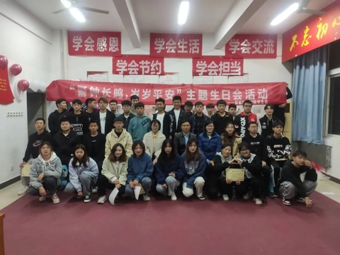 为不断加强新时代大学生的劳动教育,进一步提高新利18官方网站多少学生的责任与担当意识,拓宽心理压力释放渠道,加强学生情感素养的养成,学院打造了以融通校内校外劳动教育、家校共育为一体的月度主题生日会平台化活动。新利18官方网站多少学生会于3月31日晚在第一实训楼1103顺利举办以“警钟常鸣,岁岁平安”为主题的第四期生日会,邀请学院老师和三月份过生日的同学近60余人参加。