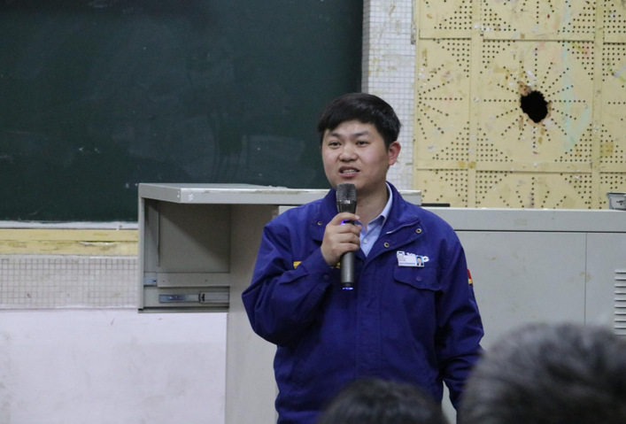 陈学保高级工程师原为新利18官方网站多少11届优秀毕业生,他曾在徐工集团研发部工作,因工作业绩突出被选聘到徐州工程机械技师学院担任教学部副部长。讲座一开始陈学保校友以一身朴素的蓝色工人制服出场,朴实亲切的自我介绍让同学们肃然起敬。他把自己的教学小程序“雨课堂”分享给现场同学,每位同学都可以在平台上和他交流,现场气氛活跃。在授课中,陈老师以学长自称,分享了自己职业生涯的三个三年规划,如何从一线装配工人到技术组再到项目组,从一线教师到教研室主任再到教研部副部长,一步一个脚印立足专业,扎实苦干的奋斗历程。陈学长利用十年的时间,获得了省级教科研成果奖励10余项,发表了学术论文40余篇。最后,陈学长寄语学弟学妹:“今天的你源于你三、五年前的努力,明天的你取决于你今天的努力程度、未来的科技将会发生剧变,唯有不断学习才能占有一席之地。”