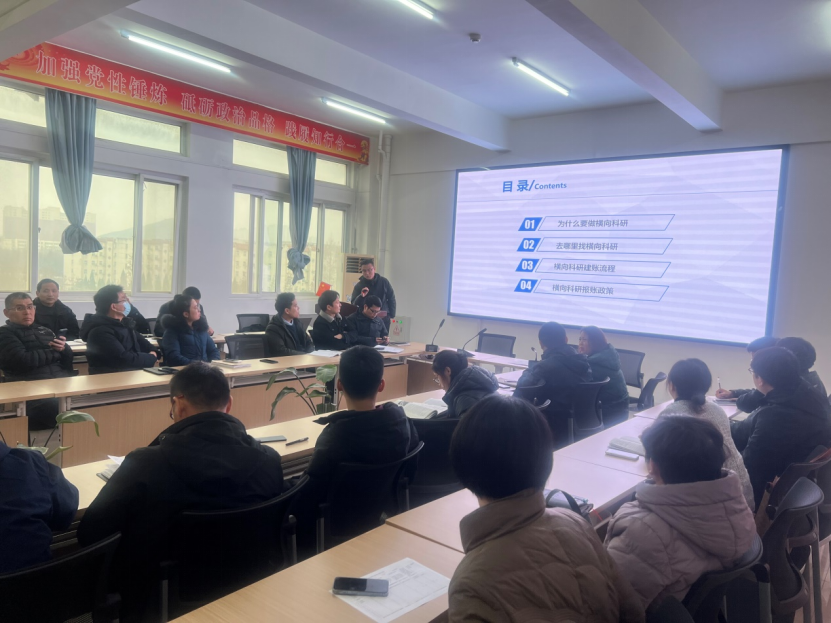 学院邀请校科技处处长刘志坚详细解读学校的横向科研政策,包括政策背景、实施意义以及学校对二级学院下达的科研指标等内容。他强调,横向科研项目是推动学院科研水平和人才培养质量的重要途径,教职工应积极关注政策动态,把握申报机会,争取更多科研项目。