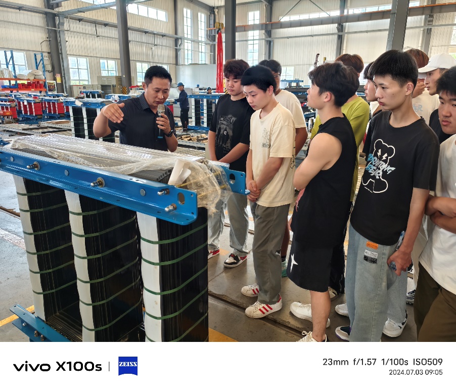7月3日,学院组织电气自动化技术专业2023级学生赴江苏华辰变压器有限公司开展识岗实习活动,旨在提升学生的岗位认知能力和专业综合素养。学生们参观了电力变压器的生产车间,深入了解产品从原材料的制作加工、组件的生产装配、再到整机的测试实验及最后的仓储交付等环节,亲身感受职场环境和工作内容。江苏华辰变压器有限公司的技术负责人谢经理为学生们进行了深入的讲解和分享,详细介绍了变压器的原理、设计、制造和应用,使学生们对专业知识有了更深入的理解,另外他还分享了职业生涯中的工作经验和个人心得,为学生们未来的职业发展提供了指导。