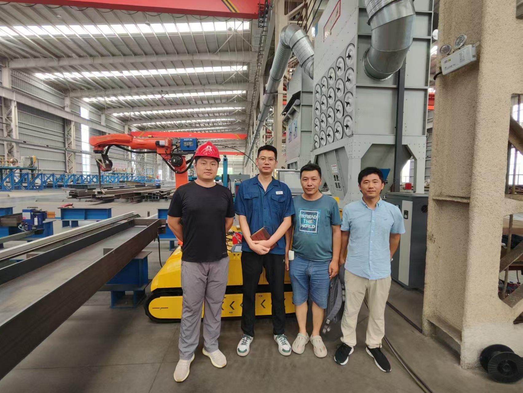 2024年7月25日,我院王勇老师、赵戈老师、胡海涛老师一行前往徐州鑫科机器人有限公司洽谈科研合作与学生实习实训工作事宜。据悉徐州鑫科机器人有限公司是一家在特种机器人领域表现出色的企业,公司专注于特种机器人的研发、生产与销售,以先进的技术和可靠的产品质量,为客户提供高效的机器人解决方案,在行业内具有较高的知名度和影响力。王老师一行洽谈了关于自行走焊接机器人的技术难点,即高精度的定位测量技术需求,并一道前往机器人的示范企业-徐州八方钢结构集团进行了现场考察和需求研讨。最后,就机器人定位技术合作和学生的实习工作,达成合作意向。