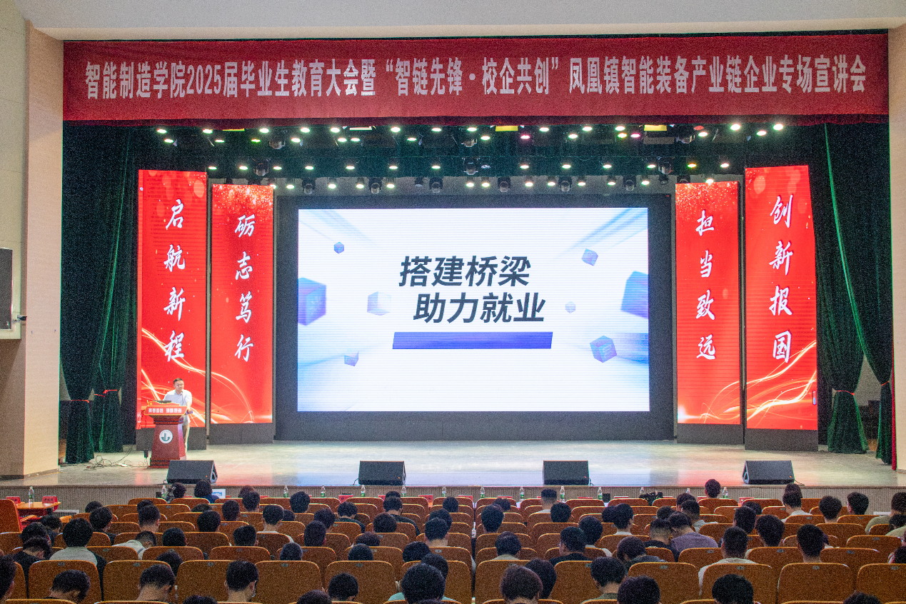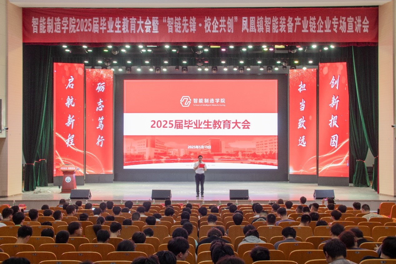 2025年5月19日,新利18官方网站多少成功举办2025届毕业生教育大会暨“智链先锋·校企共创”凤凰镇智能装备产业链企业专场宣讲会。学院领导班子、专职辅导员、毕业班班主任及全体2025届毕业生参加了此次活动。