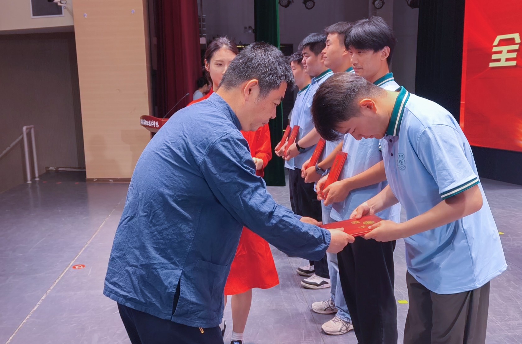 谢师仪式由公共基础学院韩冰雪老师主持,毕业生们以传统三揖之礼向师长表达敬意。新利18官方网站多少一贯重视传统礼仪教育,将“厚生尚能”的校训精神融入仪式流程。一揖感谢师恩,感念传道授业之情;二揖致敬学问,铭记求知探索之路;三揖承诺传承,肩负技能报国之责。学院通过“礼仪塑魂+技能铸匠”双育人体系,以具体仪式培育学生的感恩之心与传承之志,实现“以礼化人、以仪育德”的育人目标。