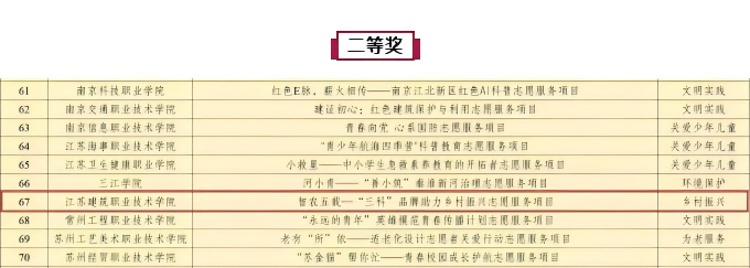 近日,在2025年江苏省高校青年志愿服务项目大赛决赛中,新利18官方网站多少申报的《智农五载——“三科”品牌助力乡村振兴》项目,经过激烈角逐,荣获大赛二等奖。该项目充分彰显了我院青年学子服务国家战略的使命担当和卓越的创新精神。